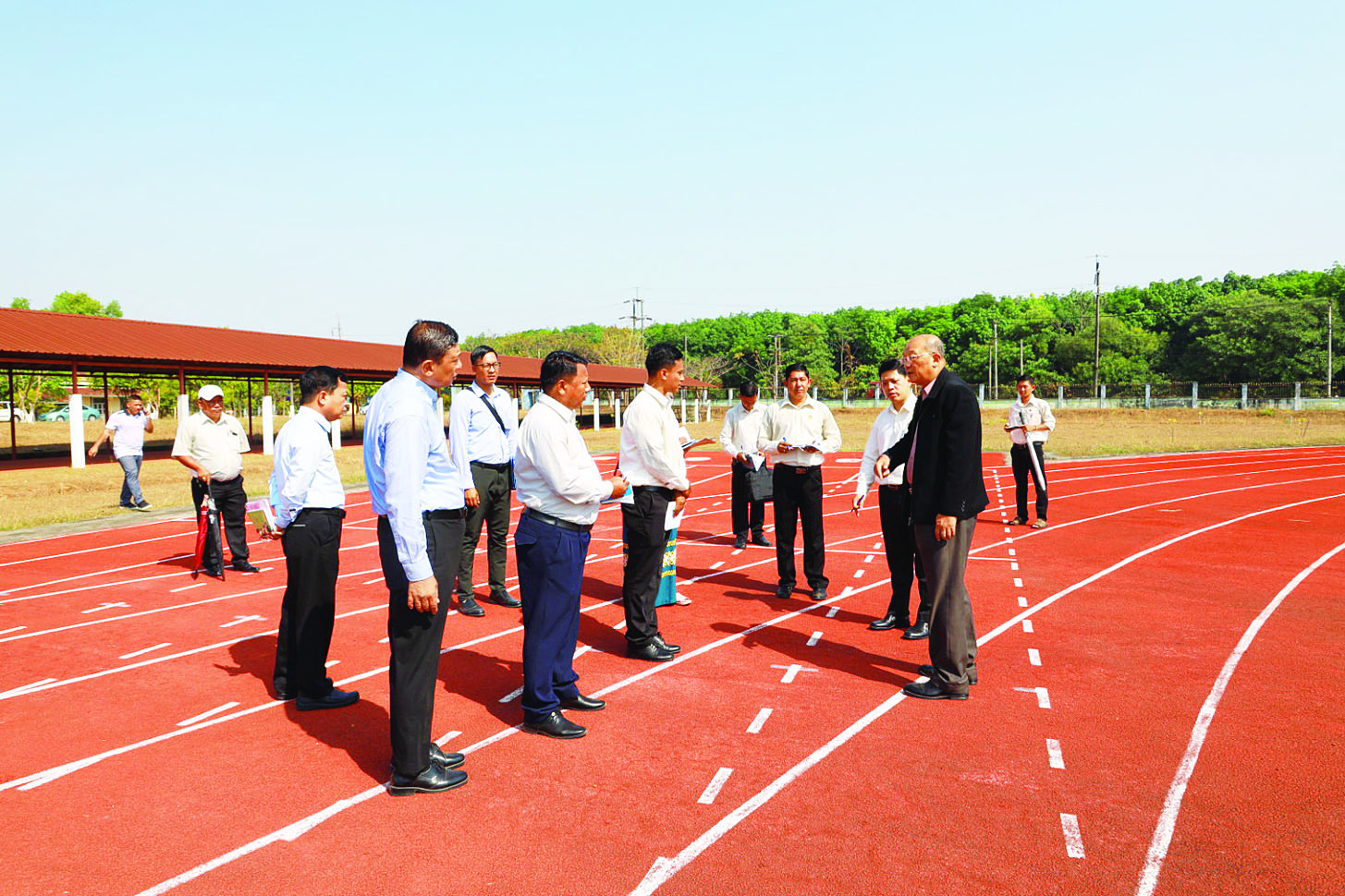 ကြည့်ရှုစဉ် ပြည်ထောင်စုဝန်ကြီးက ဘောလုံးကွင်းမြက်ခင်း စိမ်းလန်းစိုပြည်ရေးနှင့် ရေဖျန်းစနစ် ကောင်းမွန်ရေးအတွက် ရေလှောင်ကန်တစ်ခု တည်ဆောက်နိုင်ရေး စီစဉ်ဆောင်ရွက်သွားရန်နှင့် အားကစားဥယျာဉ်အတွင်းရှိ အဆောက်အအုံနှင့် အိပ်ဆောင်များ ရေရှည်တည်တံ့ရေးအတွက် ထိန်းသိမ်းစောင့်ရှောက်သွားရန်၊ အိမ်ရာများတွင် နေထိုင်သည့်ဝန်ထမ်းများ သက်သာချောင်ချိစေရေးအတွက် မြေနေရာလွတ်များတွင် သီးပင်၊ စားပင်များကို တစ်ပိုင်တစ်နိုင် စိုက်ပျိုးသွားရန်နှင့် လုံခြုံရေးအထူးဂရုစိုက်၍ နေထိုင်သွားရန်လိုကြောင်းနှင့် တည်ဆောက်ရေးလုပ်ငန်းများကို သတ်မှတ်စံချိန်စံညွှန်းနှင့်အညီ သတ်မှတ်ကာလအတွင်း အချိန်မီပြီးစီးစေရေးအတွက် စိစစ်ကြပ်မတ်ဆောင်ရွက်သွားရန် တာဝန်ရှိသူများအား မှာကြားသည်။