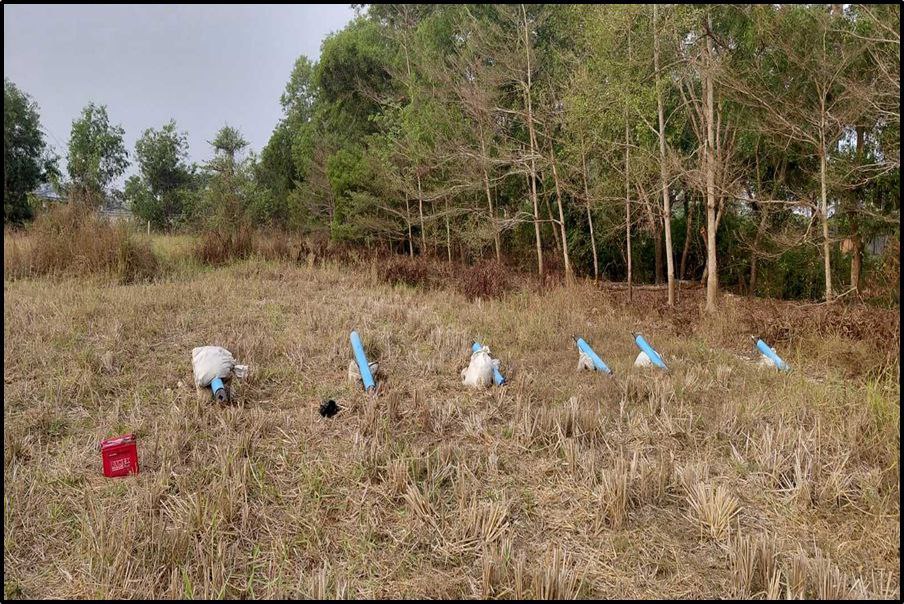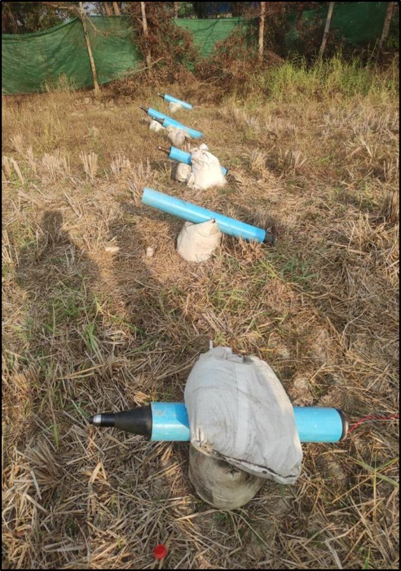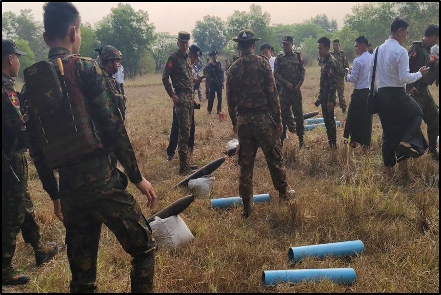 လှည်းကူးမြို့နယ်၊ ဆင်ဖုန် (မြောက်) ကျေးရွာအနီးရှိ လယ်ကွင်း၌ ပစ်ခတ်ရန် ပြင်ဆင်ထားသည့် ရှော့တိုက်ဒုံးများ တွေ့ရှိ