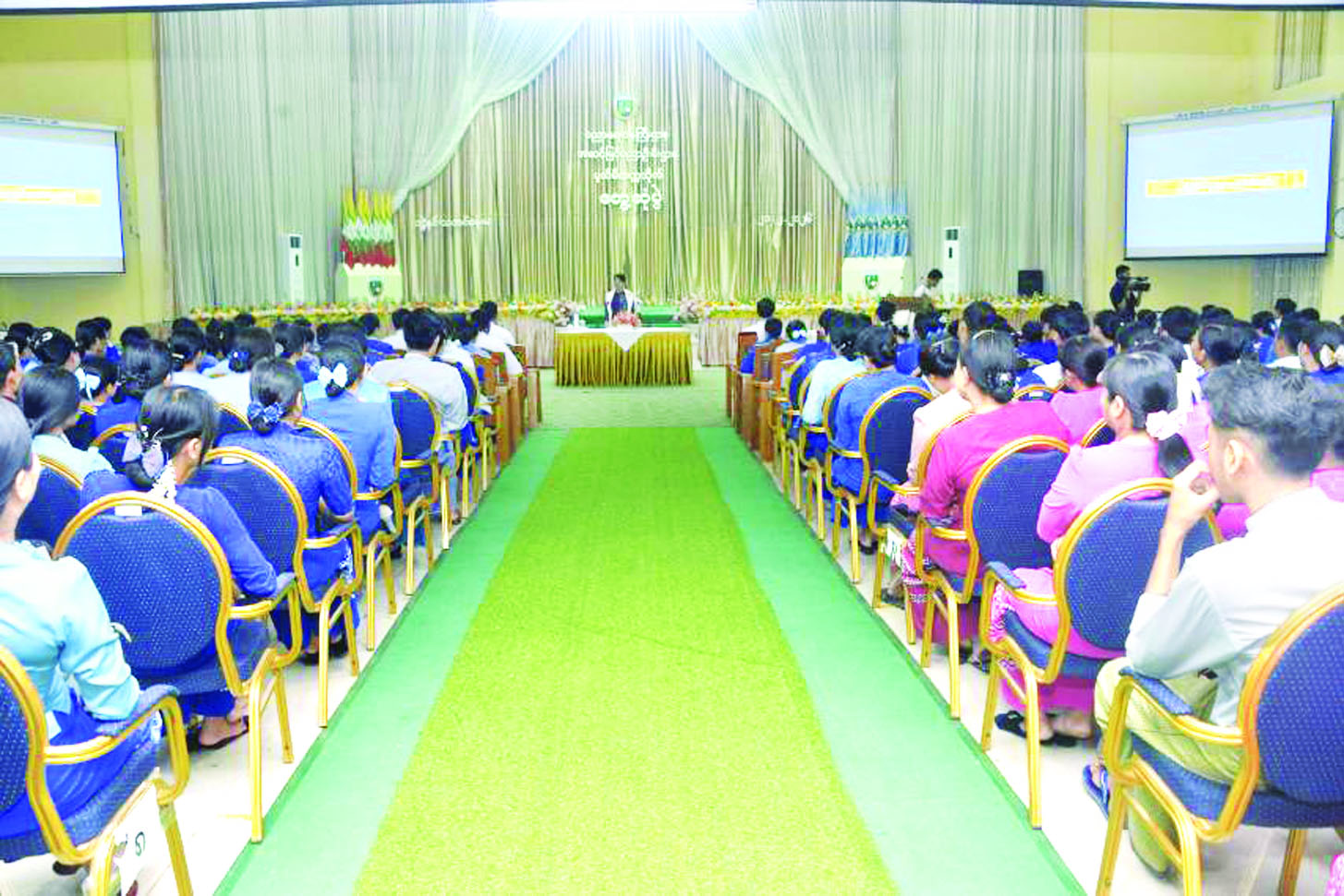ဆက်လက်၍ ပြည်ထောင်စုဝန်ကြီးက ဆရာ ဆရာမများ၊ သင်တန်းသား သင်တန်းသူများနှင့် တွေ့ဆုံပြီး လိုအပ်သည်များကို မှာကြားသည်။