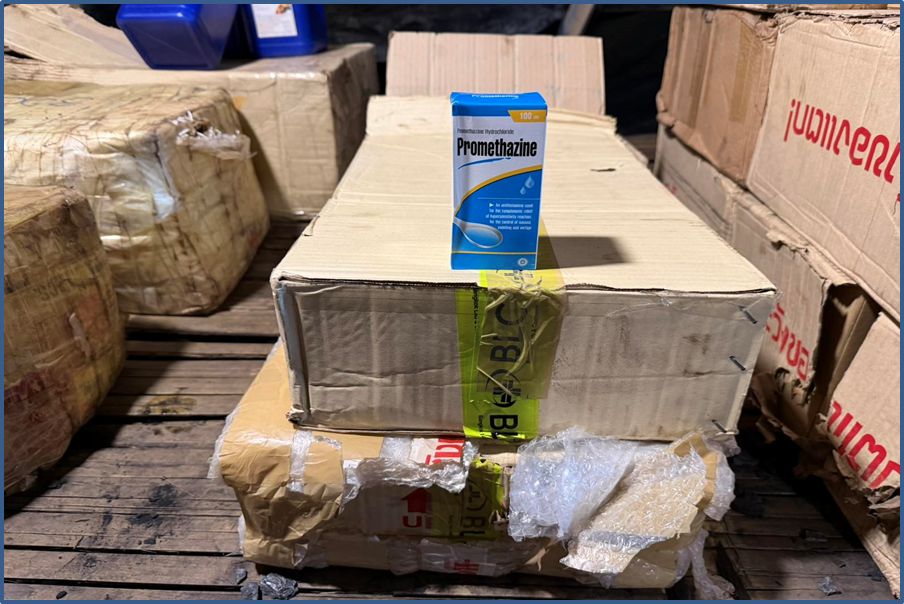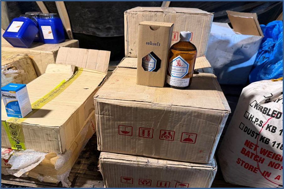 ရှမ်းပြည်နယ်(အရှေ့ပိုင်း)၊ တာချီလိတ်မြို့၏ အနောက်မြောက်ဘက် ၃၀ ကီလိုမီတာခန့်အကွာ၌ မူးယစ်ဆေးဝါးများထုတ်လုပ်နေကြောင်း သတင်းအရ လုံခြုံရေးတပ်ဖွဲ့ ဝင်များပါဝင်သောပူးပေါင်းအဖွဲ့က နယ်မြေရှင်းလင်းခြင်းများ သွားရောက်ဆောင်ရွက်ရာ ဖေဖော်ဝါရီ ၂၄ ရက် မွန်းလွဲ ၂ နာရီခန့်တွင် မိုင်းဆတ်မြို့နယ်၊ မိုင်းခုတ်မြို့၏ အရှေ့တောင်ဘက် ၁၉ ကီလိုမီတာ (ဝမ်လုံးကျေးရွာ၏ တောင်ဘက် ၈ ကီလိုမီတာခန့်) အကွာနေရာ၌ မူးယစ်ဆေးဝါးများနှင့် မူးယစ်ဆေးဝါးချက်လုပ်ရာတွင် အသုံးပြုသည့် ပစ္စည်းများဖြစ်သော Promethazine တံဆိပ်ပါ ချောင်းဆိုးပျောက်ဆေးရည် ၁၀၀ ဘူး (၅၀ ဘူးစီပါ ၂ ဖာ)၊ Food Colour တံဆိပ်ပါ အပြာရောင်ဆေးဘူးအကြီး ၁၈ ဘူးနှင့် ဘူးအသေး ၄၁ ဘူး၊ စိစစ်ဆဲဆေးရည်ပုလင်းအသေး ၅၀၀ လုံး၊ မျောက်ခေါင်း တံဆိပ်ပါအနံ့ဆေးရည် ၁၅ ဖာ (တစ်ဖာလျှင် ဘူး ၂၀ ခန့်)၊ စိစစ်ဆဲအဖြူရောင်အမှုန့် ဆာလာအိတ် တစ်ဝက်ခန့်စီပါ ၆ အိတ်၊ ဘိန်းမည်း ၃ ထုတ်၊ ဘိန်းဖြူဘလောက်တုံး ၁ တုံး၊ စိစစ်ဆဲ အနက်ရောင် အထုတ် ၁ ထုတ်၊ အဖြူရောင်ပုံဆောင်ခဲ ၁ ကီလိုဂရမ်စီပါ ၉ ထုတ်၊ တိပ်ဝါများပိတ်ထားသည့် WY ဆေးပြား ၆၀၀၀ ပြားခန့်ပါ ၁၂ စည်း၊ ၉၉၉ တံဆိပ်ပါ တိပ်ဝါပတ်လျက် WY ဆေးပြား ၁၀၀၀၀ ခန့်ပါ ၁၀ စည်း၊ ထုတ်ပိုးရခြင်းမရှိသေးသည့် WY ဆေးပြား ဆာလာအိတ် တစ်ဝက်ခန့်စီပါ ၁၂ အိတ်၊ WY ဆာလာအိတ် တစ်ဝက်ခန့်စီထည့်ထားသည့် ဆေးပြားထုတ်လုပ်ရာတွင် အသုံးပြုသည်ဟုယူဆရသည့် ဆေးမှုန့် ၁၂ အိတ်၊ ရိုက်တံမို ၂ ဖာနှင့် ဆက်စပ်ပစ္စည်းများ ထည့်သွင်းထားသည့် အပြာရောင်ဘူးကြီး ၁၄ ဘူး၊ ကီလိုချိန်စက် ၃ လုံး၊ မီးစက်အကြီး ၁ လုံး၊ မွှေစက်အသေး ၃ လုံးနှင့် အခြောက်ခံဗန်းဆိုဒ်စုံ ၃၂ ခုတို့ကို တွေ့ရှိသိမ်းဆည်း ရမိခဲ့ကြောင်းသိရှိရသည်။