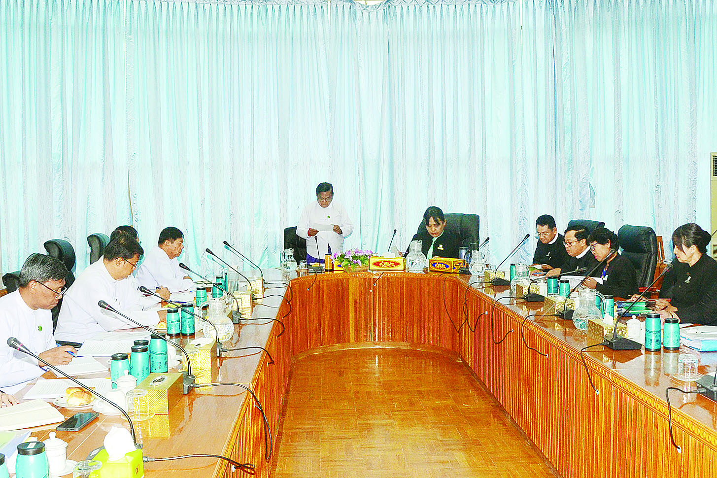အစည်းအဝေးသို့ ဥပဒေရေးရာဝန်ကြီးဌာန ပြည်ထောင်စုဝန်ကြီးနှင့် ပြည်ထောင်စုရှေ့နေချုပ် ဒေါက်တာသီတာဦး၊ စက်မှုဝန်ကြီးဌာန ပြည်ထောင်စုဝန်ကြီး ဒေါက်တာချာလီသန်း၊ ဒုတိယဝန်ကြီးနှင့် ဒုတိယရှေ့နေချုပ်၊ ဥပဒေမူကြမ်းစိစစ်ရေးဦးစီးဌာန ညွှန်ကြားရေးမှူးချုပ်၊ စက်မှုကြီးကြပ်ရေးနှင့်စစ်ဆေးရေးဦးစီးဌာန ညွှန်ကြားရေးမှူးချုပ်နှင့် တာဝန်ရှိသူများ တက်ရောက်ကြသည်။