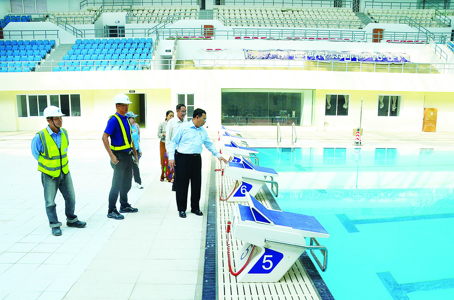 ထို့နောက် ဒုတိယဝန်ကြီးသည် ဝဏ္ဏသိဒ္ဓိရေကူးကန် မီတာ ၅၀ ပြိုင်ပွဲသုံး ရေကူးကန်နှင့် ဒိုင်ဗင်ကန် ပြန်လည်ပြုပြင်ပြီးစီးမှုကို ကြည့်ရှုစစ်ဆေးပြီး အချိန်မီပြီးစီးစေရေးနှင့် သတ်မှတ်စံချိန် စံညွှန်းနှင့်အညီ အရည်အသွေးကောင်းမွန်စေရေးတို့အတွက် တာဝန်ရှိသူများက စိစစ်ကြပ်မတ်ဆောင်ရွက်သွားရန် မှာကြားသည်။