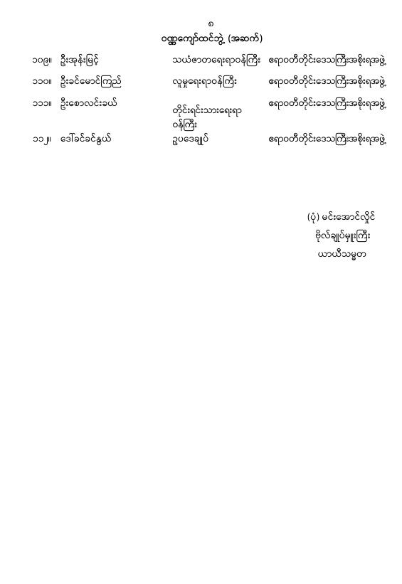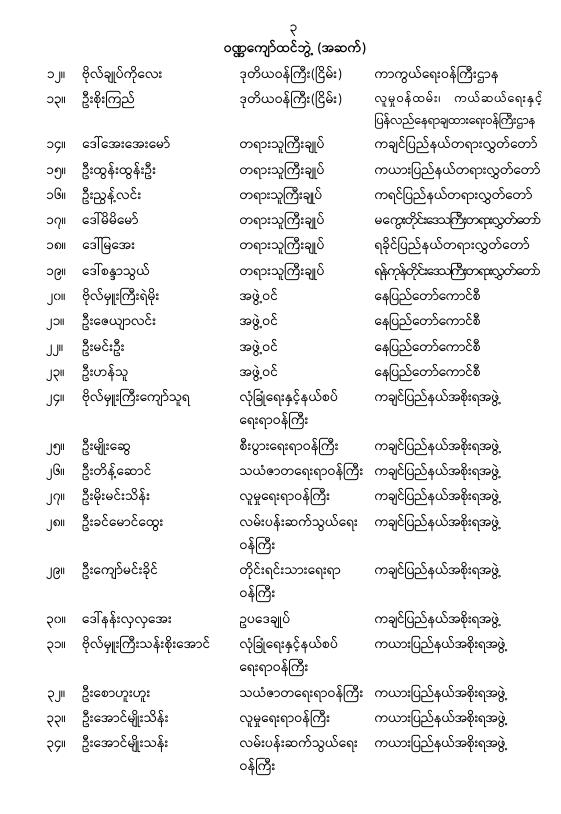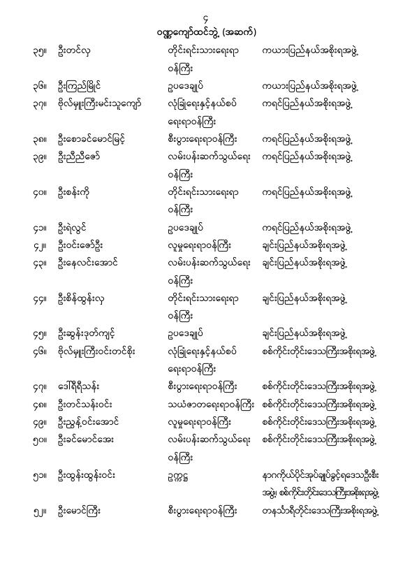 ဝန်ကြီးဌာန ကြေညာချက်များ