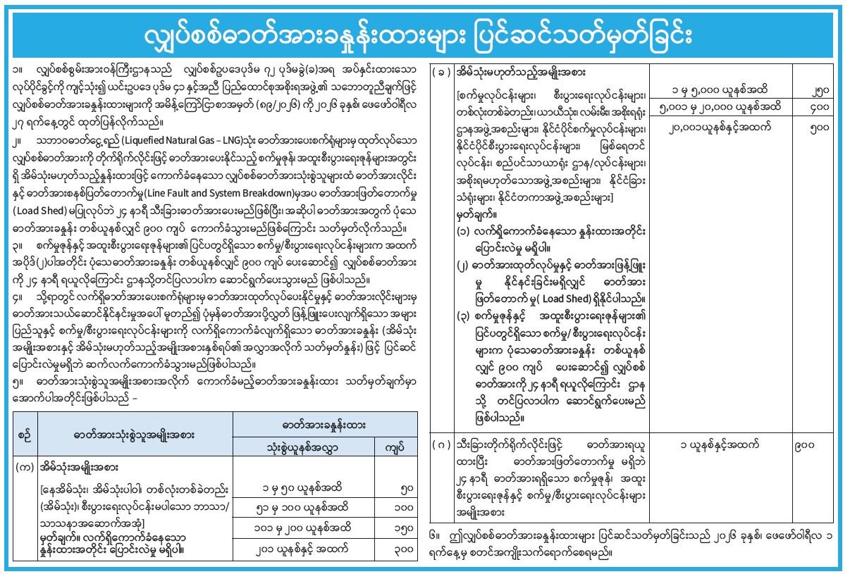 လျှပ်စစ်ဓာတ်အားခနှုန်းထားများ ပြင်ဆင်သတ်မှတ်ခြင်း