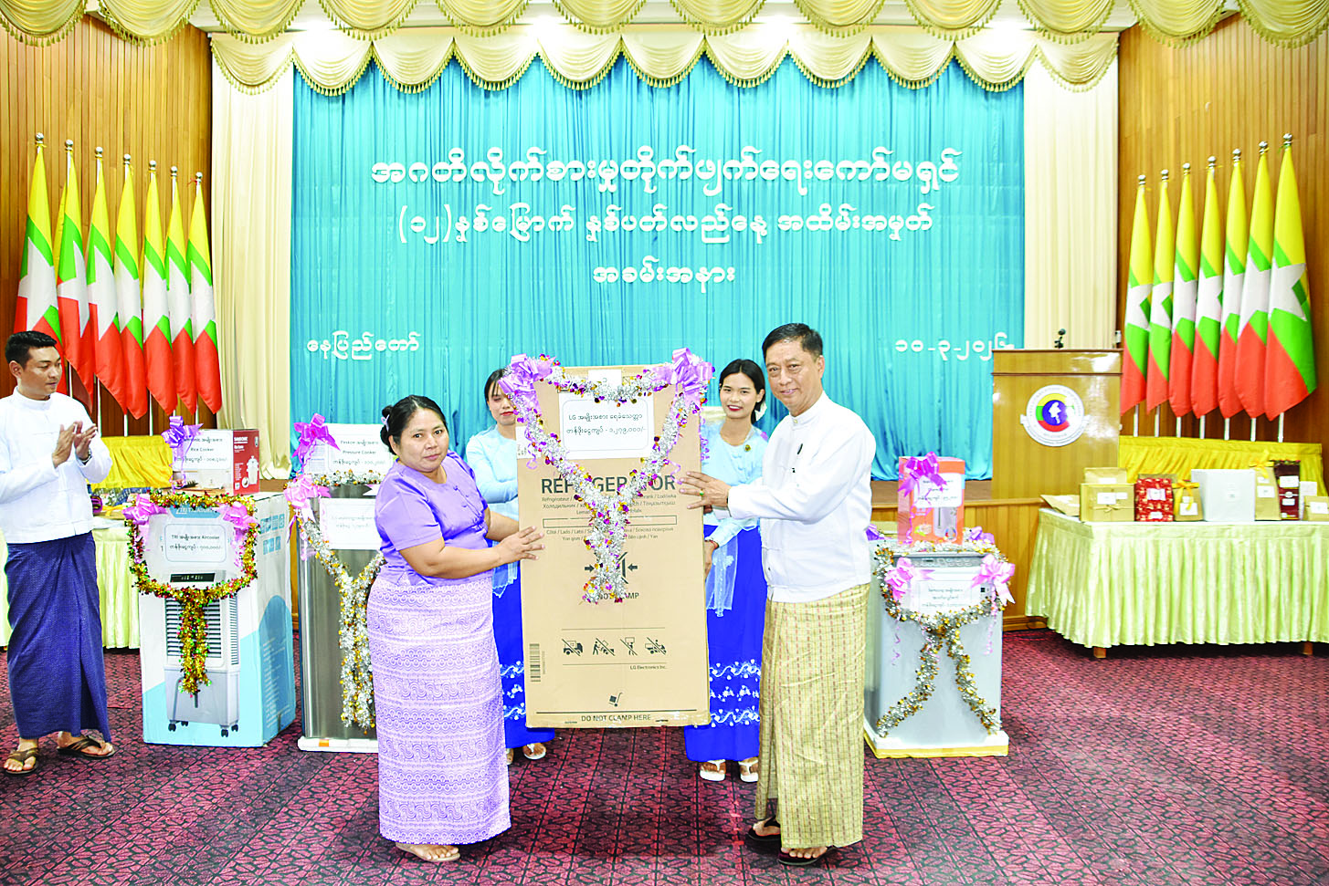 ထို့နောက် ပြည်ထောင်စုဝန်ကြီးဌာန အဖွဲ့အစည်းများတွင်ဖွင့်လှစ်သည့် သင်တန်းများ၌ ထူးချွန်စွာအောင်မြင်ခဲ့သည့် ကော်မရှင်ရုံးဝန်ထမ်းများအား ဆုများချီးမြှင့်ခြင်းနှင့် ဗလာမပါ ကံစမ်းမဲဖောက်ပေးခြင်းတို့ကို ဆောင်ရွက်ခဲ့ကြောင်း သိရသည်။