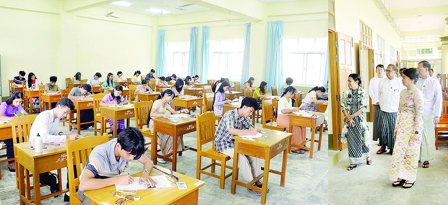 ပညာရေးဝန်ကြီးဌာန ပြည်ထောင်စုဝန်ကြီး ဒေါက်တာချောချောစိန်သည် ဒုတိယဝန်ကြီး ဒေါက်တာဇော်မြင့်၊ Naypyitaw State Academy ပါမောက္ခချုပ်၊ တာဝန် ရှိသူများနှင့်အတူ ယနေ့နံနက်ပိုင်းက Naypyitaw State Academy ၌ ၂၀၂၅-၂၀၂၆ ပညာသင်နှစ် ပထမနှစ်၊ ဒုတိယနှစ်၊ တတိယနှစ်၊ စတုတ္ထနှစ်၊ ပဉ္စမနှစ်(ဥပဒေ)၊ ပထမနှစ် ဂုဏ်ထူးတန်း၊ ဒုတိယနှစ်ဂုဏ်ထူးတန်း၊ တတိယနှစ်ဂုဏ်ထူးတန်း၊ မဟာအရည်အချင်းစစ်သင်တန်း၊ မဟာတန်း ပထမနှစ်နှင့် မဟာတန်းဒုတိယနှစ် သင်တန်းများ၏ ပထမပညာသင်ကာလ စာမေးပွဲများတွင် တက္ကသိုလ်ကျောင်းသား ကျောင်းသူများ အေးချမ်းစွာ ဖြေဆိုနေမှုများကို ကြည့်ရှုစစ်ဆေးသည်။