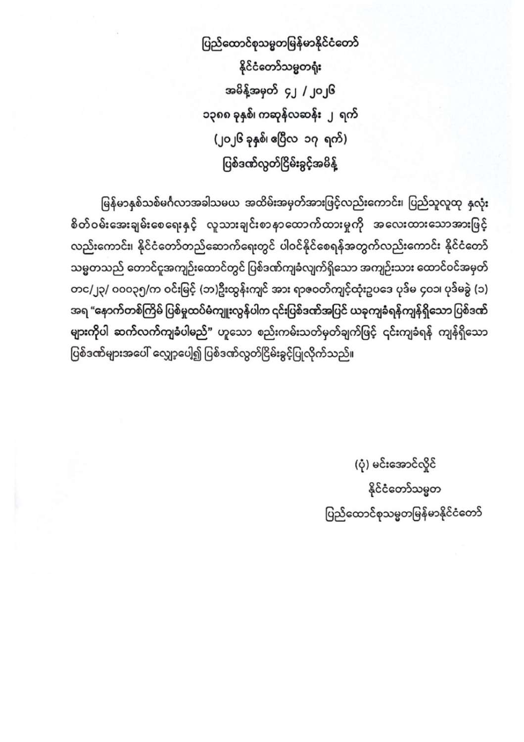 နိုင်ငံတော်အစိုးရ၏ ကြေညာချက်များ