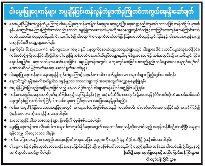 လေပြင်းဘေး ကြိုတင်ပြင်ဆင်ရေးနှင့် စပ်လျဉ်း၍ ပြည်သူသို့ အသိပေးနှိုးဆော်ချက်
