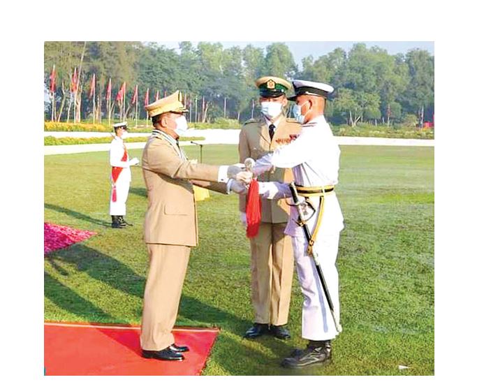 ထို့နောက် တပ်မတော်ကာကွယ်ရေးဦးစီးချုပ်က သင်တန်းဆင်းမိန့်ခွန်း ပြောကြားပြီးနောက် ဗိုလ်လောင်းတပ်ခွဲများ၏ အလေးပြုခြင်းကိုခံယူပြီး စစ်ရေးပြအခမ်းအနားမှ ပြန်လည် ထွက်ခွာသည်။