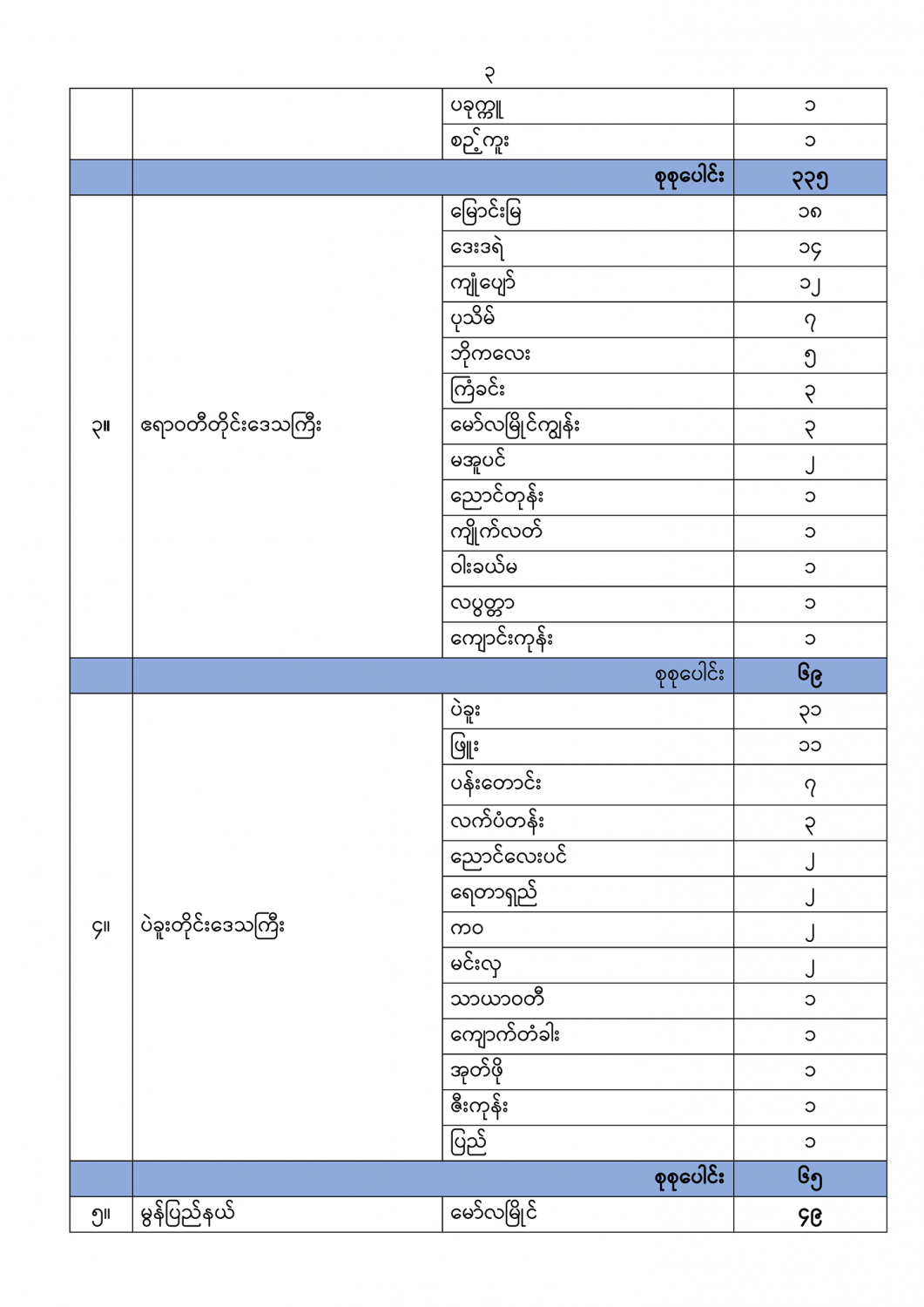 (၁၆-၁၂-၂၀၂၀) ရက်နေ့ ဓာတ်ခွဲစစ်ဆေးမှုများ၌ တွေ့ရှိခဲ့သော ဓာတ်ခွဲအတည်ပြုလူနာ (၁,၂၃၃) ဦး၏ မြို့နယ်အလိုက် တွေ့ရှိရမှုအခြေအနေမှာ အောက်ပါအတိုင်း ဖြစ်ပါသည်။