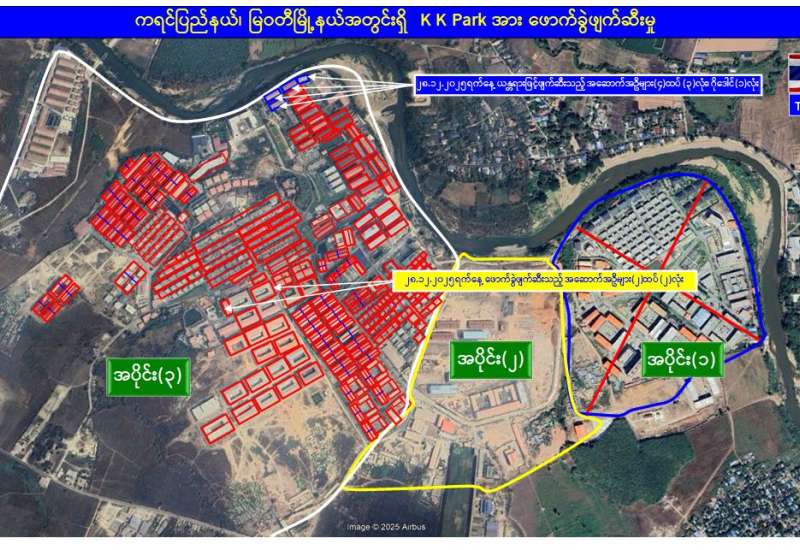 မြန်မာနိုင်ငံအစိုးရအနေဖြင့် အွန်လိုင်းလိမ်လည်လောင်းကစားမှုများ အများဆုံးအခြေချလုပ်ကိုင်လျက်ရှိကြသည့် ရွှေကုက္ကိုလ်နယ်မြေနှင့် KK Park နယ်မြေများရှိ တရားမဝင်အဆောက်အအုံများအတွင်း ဝင်ရောက်ရှင်းလင်းခြင်း၊ အွန်လိုင်းလိမ်လည် လောင်းကစားမှုလုပ်ငန်းစဉ်များတွင် အသုံးပြုခဲ့သည့် သိမ်းဆည်းရမိပစ္စည်းများနှင့် တရားမဝင်အဆောက်အအုံများအား စနစ်တကျဖြိုချဖျက်ဆီးခြင်းများကို လုံခြုံရေးတပ်ဖွဲ့ဝင်များ၊ အုပ်ချုပ်ရေးအဖွဲ့အစည်းများနှင့် ဒေသတွင်းတာဝန်ရှိသူများအပါအဝင် အဖွဲ့စုံပါဝင်သည့် ပူးပေါင်းအဖွဲ့ဖြင့် ဆောင်ရွက်လျက်ရှိရာ ယနေ့တွင် KK Park နယ်မြေအတွင်းရှိ တရားမဝင်အဆောက်အအုံ ၆ လုံးကို ထပ်မံဖြိုချဖျက်ဆီးခဲ့ကြောင်း သိရှိရသည်။