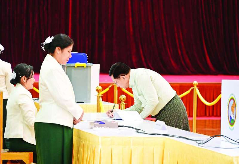 ပြည်ထောင်စုသမ္မတမြန်မာနိုင်ငံတော် ၂၀၂၅ ခုနှစ် ပါတီစုံဒီမိုကရေစီအထွေထွေရွေးကောက်ပွဲကြီးကို ယနေ့နံနက် ၆ နာရီမှစတင်၍ နိုင်ငံတစ်ဝန်းလုံးတွင် ကျင်းပပြုလုပ်ရာ မဲဆန္ဒရှင်ပြည်သူများက သက်ဆိုင်ရာမဲရုံများတွင် ဆန္ဒမဲများပေးကြသည်။