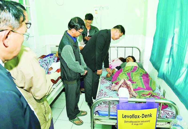 မန္တလေးတိုင်းဒေသကြီးဝန်ကြီးချုပ် ဦးမျိုးအောင်သည် တိုင်းဒေသကြီးဝန်ကြီးများနှင့် အတွင်းရေးမှူးတို့လိုက်ပါပြီး ယနေ့နံနက်ပိုင်းက မန္တလေးမြို့တွင်းသို့ အကြမ်းဖက်သောင်းကျန်းသူများ ပစ်ခတ်ခဲ့သည့် ရှော့တိုက်ဒုံးကျရောက်ပေါက်ကွဲမှုကြောင့် အပြစ်မဲ့ပြည်သူ အရပ်သားနှစ်ဦးမှာ ထိခိုက်ဒဏ်ရာရရှိ၍ မန္တလေးပြည်သူ့ဆေးရုံကြီးတွင် ဆေးကုသပေးနေမှုအား သွားရောက်ကြည့်ရှုပြီး အားပေးစကားများ ပြောကြားကာ ထောက်ပံ့ငွေများ ပေးအပ်ခဲ့သည်။