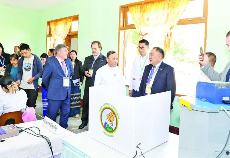“အများယုံကြည်လက်ခံသည့် ရွေးကောက်ပွဲမှသည် ဒီမိုကရေစီနိုင်ငံတော်သစ်ဆီသို့” ဆောင်ပုဒ်နှင့်အညီ ပြည်ထောင်စုရွေးကောက်ပွဲကော်မရှင်၏ ၂၀၂၅ ခုနှစ် ပါတီစုံဒီမိုကရေစီအထွေထွေရွေးကောက်ပွဲ ကျင်းပနေမှုကို နိုင်ငံတကာနှင့် ပြည်တွင်းအခြေစိုက် နိုင်ငံခြားသံရုံးများမှ ရွေးကောက်ပွဲစောင့်ကြည့်လေ့လာသူများက နေပြည်တော်ကောင်စီနယ်မြေရှိ မဲရုံများသို့ သွားရောက်၍ မဲရုံမှူးများ၊ မဲဆန္ဒရှင်ပြည်သူများနှင့် တွေ့ဆုံကာ ရွေးကောက်ပွဲနှင့်ပတ်သက်ပြီး ဆွေးနွေးလေ့လာစောင့်ကြည့်မှုများ ပြုလုပ်ကြသည်။