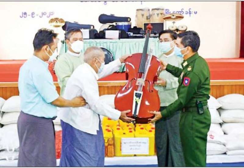 နိုင်ငံတော်စီမံအုပ်ချုပ်ရေးကောင်စီ ဥက္ကဋ္ဌ၊ နိုင်ငံတော်ဝန်ကြီးချုပ် ဗိုလ်ချုပ်မှူးကြီး မင်းအောင်လှိုင် က မန္တလေးမြို့မတူရိယာအသင်းအတွက် ပေးအပ်ချီးမြှင့်သည့် တူရိယာပစ္စည်းများ လွှဲပြောင်းပေးအပ်ခြင်း နှင့် မန္တလေးတိုင်း ဒေသကြီးအစိုးရအဖွဲ့က အခြေခံစားသောက်ကုန်များ ထောက်ပံ့ ပေးအပ်ခြင်းကို ယမန်နေ့ မွန်းလွဲပိုင်းတွင် မန္တလေးမြို့တော် စည်ပင်သာယာရေးကော်မတီ မြို့တော်ခန်းမ၌ ပြုလုပ်ရာ မန္တလေးတိုင်းဒေသကြီးဝန်ကြီးချုပ် ဦးမောင်ကို၊ အလယ်ပိုင်းတိုင်း စစ်ဌာနချုပ် တိုင်းမှူး ဗိုလ်ချုပ်ကိုကိုဦးနှင့် ဌာနဆိုင်ရာ တာဝန်ရှိသူများ၊ မန္တလေး မြို့မတူရိယာအသင်းမှ တာဝန်ရှိသူများ တက်ရောက်ကြသည်။