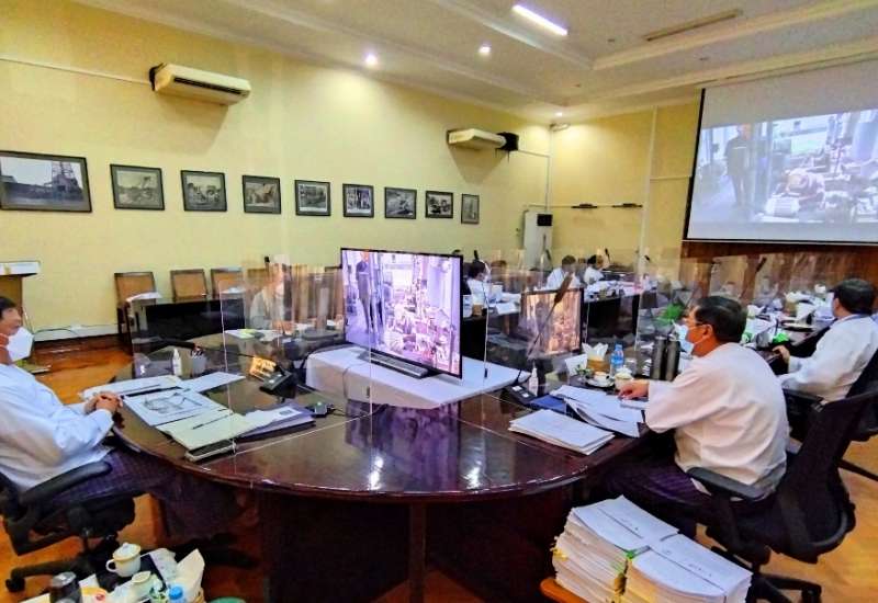 လျှပ်စစ်နှင့်စွမ်းအင်ဝန်ကြီးဌာနသည် နိုင်ငံတော်၏ စိုက်ပျိုးရေးကဏ္ဍအတွက် လိုအပ်သော ဓာတ်မြေဩဇာလိုအပ်ချက်ကို ဖြည့်ဆည်းပေးနိုင်ရေး အမှတ်(၃) ဓာတ်မြေ ဩဇာစက်ရုံ(ကျော်စွာ) ပြန်လည်လည်ပတ်၍ ဓာတ်မြေဩဇာထုတ်လုပ်ဖြန့်ဖြူးနိုင်ရန် စီစဉ် ဆောင်ရွက်လျက်ရှိရာစက်ရုံ လည်ပတ်နိုင်ရန်လိုအပ်သော သဘာဝဓာတ်ငွေ့ပိုက်လိုင်း ဆက်သွယ်ပြုပြင်ခြင်းနှင့် စက်ရုံ ပြင်ဆင်ခြင်းလုပ်ငန်းများဆောင်ရွက်နေမှုကို ပြည်ထောင်စုဝန်ကြီး ဦးအောင်သန်းဦးနှင့် တာဝန်ရှိ သူများက ညှိနှိုင်းဆွေးနွေး ခဲ့ကြပြီး လုပ်ငန်းခွင် ဆောင်ရွက်နေမှုတို့ကို Virtual စနစ်ဖြင့် ကြည့်ရှု စစ်ဆေးသည်။
