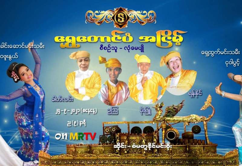 အများပြည်သူ ပျော်ရွှင်စေရန်၊ အပန်းပြေစေရန်နှင့် စိတ်ခွန်အားသစ်များ ရရှိနိုင်ရန်အတွက် မြန်မာ့အသံနှင့် ရုပ်မြင် သံကြားမှ ဖျော်ဖြေရေးအစီအစဥ်များကို တင်ဆက်လျက်ရှိရာ “ရွှေတောင်ပံအငြိမ့်” ဖျော်ဖြေပွဲကို စက်တင်ဘာ (၂၅)ရက်၊ စနေနေ့ ည(၈) နာရီသတင်း အပြီးတွင် မြန်မာ့အသံနှင့် ရုပ်မြင်သံကြား၏ MRTV-HD Channel မှ ထုတ်လွှင့်ပြသမည် ဖြစ်သည်။