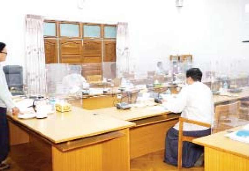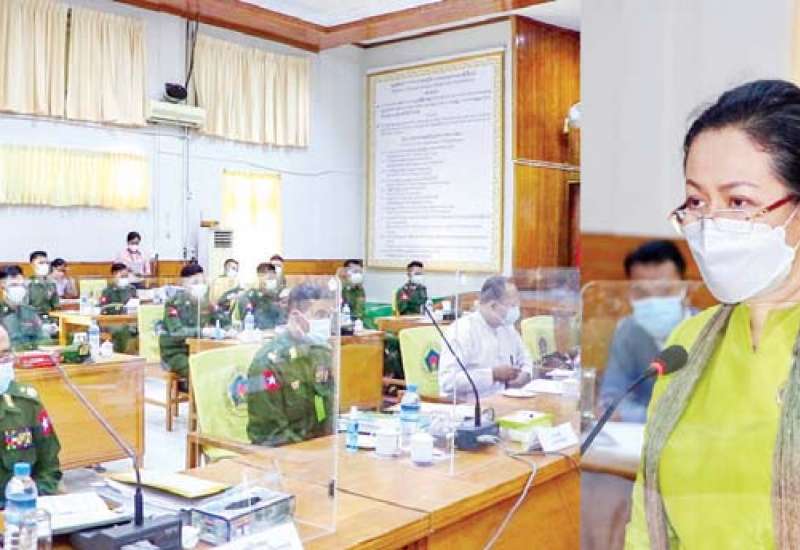 တပ်မတော်မှ နိုင်ငံတော်ကာကွယ်ရေးတာဝန် များကို ထမ်းဆောင်စဉ် ထိခိုက်ဒဏ်ရာရရှိခဲ့သော ဆေးအဆင့်နိမ့် အီးအေ (၁/၂) အရာရှိများအား နယ်ဘက်ဝန်ကြီးဌာန/အဖွဲ့အစည်းများသို့ လွှဲပြောင်းတာဝန်ထမ်းဆောင်နိုင်ရေး ဘုတ်အဖွဲ့အစည်းအဝေးကို ယနေ့နံနက်ပိုင်းတွင် လူမှုဝန်ထမ်း၊ ကယ်ဆယ်ရေးနှင့် ပြန်လည်နေရာချထားရေးဝန်ကြီးဌာန စုပေါင်း အစည်းအဝေး ခန်းမတွင် ကျင်းပရာ ဘုတ်အဖွဲ့ဝင်များ၊ အီးအေ (၁/၂) အရာရှိများ တက်ရောက်ကြသည်။