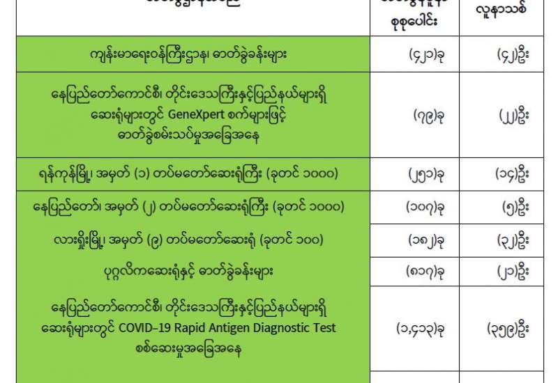 ကျန်းမာရေးဝန်ကြီးဌာနအနေဖြင့် နိုင်ငံအတွင်း ကူးစက်ဖြစ်ပွားနေသော COVID-19 ရောဂါကာကွယ်၊ ကုသ၊ ထိန်းချုပ်ရေးလုပ်ငန်းများကို အရှိန်အဟုန်မြှင့်ဆောင်ရွက်လျက်ရှိရာ ရောဂါထိန်းချုပ်ရေးလုပ်ငန်းများ အောင်မြင်နိုင်ရေးအတွက် ပြည်သူလူထုအနေဖြင့် -