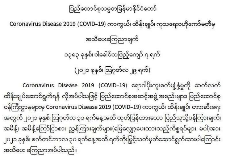 (၂၀၂၁ ခုနှစ်၊ ဩဂုတ်လ (၂၉)ရက်နေ့ ည(၇:၀၀)နာရီအချိန် ထုတ်ပြန်ချက်)
