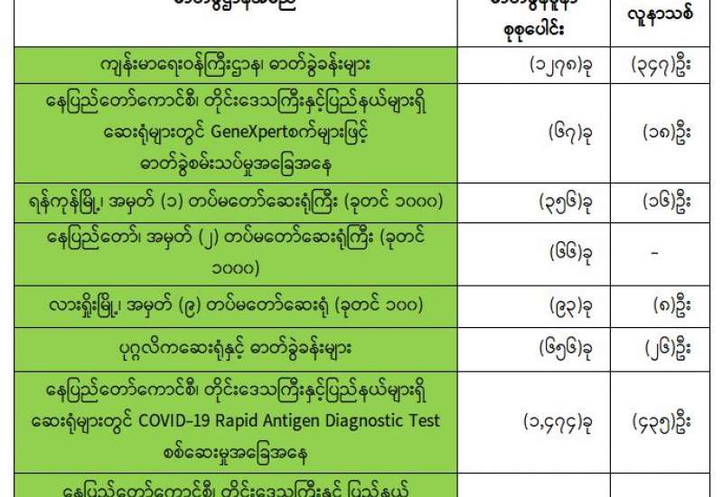 ကျန်းမာရေးဝန်ကြီးဌာနအနေဖြင့် နိုင်ငံအတွင်း ကူးစက်ဖြစ်ပွားနေသော COVID-19 ရောဂါကာကွယ်၊ ကုသ၊ ထိန်းချုပ်ရေးလုပ်ငန်းများကို အရှိန်အဟုန်မြှင့်ဆောင်ရွက်လျက်ရှိရာ ရောဂါထိန်းချုပ်ရေးလုပ်ငန်းများ အောင်မြင်နိုင်ရေးအတွက် ပြည်သူလူထုအနေဖြင့် -
