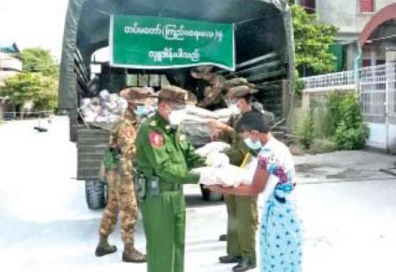 စစ်မှုထမ်းဟောင်း အဖွဲ့ဝင်များ၊ မြန်မာနိုင်ငံရဲတပ်ဖွဲ့ဝင်များ၊ ပြည်သူ့စစ်(ဌာနေ)တပ်ဖွဲ့ဝင်များ၊ ကျန်းမာရေးဝန်ထမ်းများ၊ စေတနာ့ဝန်ထမ်းများနှင့် ဒေသခံပြည်သူများ စားရေးအဆင်ပြေစေရေးအတွက် တပ်မတော်နှင့် စေတနာရှင်အလှူရှင်များက စားသောက်ဖွယ်ရာများနှင့် ရောဂါကာကွယ်ရေးအထောက်အကူပြုပစ္စည်းများအား ထောက်ပံ့ပေးအပ်လျက်ရှိသည်။