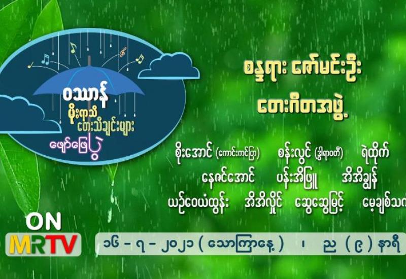 ဝဿာန်မိုးရာသီ တေးသီချင်းများ ဖျော်ဖြေပွဲ၏ ပွဲစဉ်(၇)ကို ဇူလိုင် (၁၆)ရက်၊ ည(၈)နာရီ သတင်းအပြီးတွင် မြန်မာ့အသံနှင့်ရုပ်မြင်သံကြား၌ ထုတ်လွှင့်ပြသမည် ဖြစ်သည်။