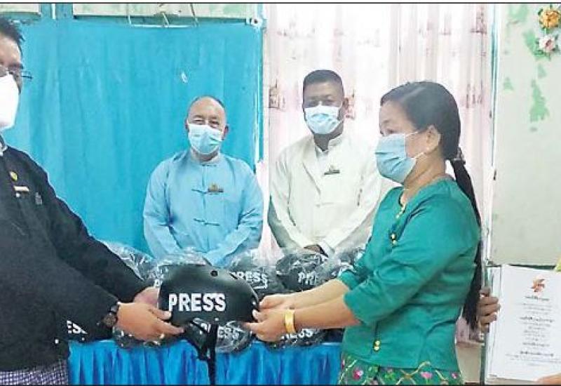 မြန်မာနိုင်ငံ သတင်းမီဒီယာကောင်စီက ရန်ကုန်မြောက်ပိုင်း ခရိုင် လူထုအခြေပြုဌာနသို့ သတင်း သမားများအတွက် Press Helmet ၂၅ လုံးနှင့် သတင်း မီဒီယာဥပဒေ၊ နည်းဥပဒေစာအုပ် များ ပေးအပ်လှူဒါန်းပွဲကို ယနေ့ နံနက် ၁၁ နာရီတွင် ကျင်းပ ပြုလုပ်ရာ မြန်မာနိုင်ငံ သတင်း မီဒီယာကောင်စီတွဲဖက် အတွင်း ရေးမှူး (၂)၊ သတင်းမီဒီယာ ကျင့်ဝတ်နှင့် သတင်းမီဒီယာ ဖွံ့ဖြိုးရေး ကော်မတီအဖွဲ့ ခေါင်းဆောင် ဦးအောင်ပြည့်စုံနှင့် သတင်းမီဒီယာ ကောင်စီဝင်များ က မြောက်ပိုင်းခရိုင်ဦးစီးအရာရှိ ဒေါ်အေးအေးခိုင်ထံ ပေးအပ် လှူဒါန်းခဲ့ကြသည်။