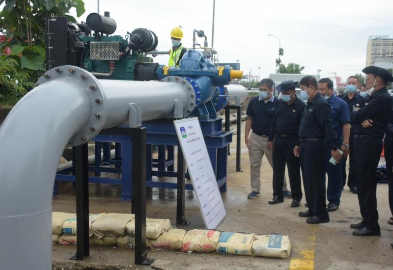 ရန်ကုန်မြို့တော် စည်ပင်သာယာရေးကော်မတီဥက္ကဋ္ဌ(မြို့တော်ဝန်) ဦးဗိုလ်ဌေးသည် ယနေ့ ညနေ ၃ နာရီခွဲက လမ်းမတော်မြို့နယ် မော်တင်ယာယီ ဈေးရပ်ကွက် ကမ်းနားလမ်းရှိ ရွာသစ်ချောင်းရေထိန်းတံခါးမြစ်ထွက်ပေါက်တွင် ၁ နာရီ ရေဂါလန် ၁၉၀,၀၀၀ စုပ်ထုတ်နိုင်သည့် မြင်းကောင်ရေ ၆၀ အားရှိသည့် 40 KW ရေစုပ်စက်ဖြင့် ရေထိန်းတံခါးပိတ်၍