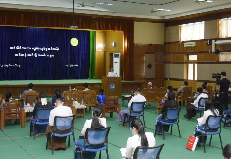 ပြန်ကြားရေးဝန်ကြီးဌာနနှင့် ပညာရေးဝန်ကြီးဌာနတို့ ပူးပေါင်းစီစဉ်ဖွင့်လှစ်သော အင်္ဂလိပ်ဘာသာ ကျွမ်းကျင်မှုသင်တန်းဆင်းပွဲ အခမ်းအနားကို ယနေ့နံနက် ၁၀ နာရီတွင် နေပြည်တော်ရှိ ပြန်ကြားရေး ဝန်ကြီးဌာန အစည်းအဝေးခန်းမ၌ ကျင်းပသည်။