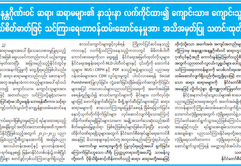 တိုင်းဒေသကြီး၊ ပြည်နယ်များရှိ မြို့နယ်အချို့တွင် အုပ်ချုပ်ရေးပိုင်းဆိုင်ရာ တာဝန်ရှိသူများ၊ နိုင်ငံ့ဝန်ထမ်းများနှင့် အေးချမ်းစွာ နေထိုင်နေကြသော ပြည်သူလူထုအချို့အား လူထုအတွင်း အကြောက်တရားများလွှမ်းမိုးလာစေရန်နှင့် ငါနှင့်မတူ ငါ့ရန်သူဟူသည့် တစ်ဖက်သက်အစွန်းရောက် ဂိုဏ်းဂဏစွဲအပေါ် အခြေခံကာ လက်နက်ကိုင်အကြမ်းဖက်သူများက သေနတ်များ၊ တုတ်/ဓားများ၊ လက်လုပ်ဗုံး၊ လက်ပစ်ဗုံးများအသုံးပြုကာ အကြောင်းမဲ့ ရက်စက်စွာ လုပ်ကြံသတ်ဖြတ်ခဲ့ကြောင်း သိရသည်။