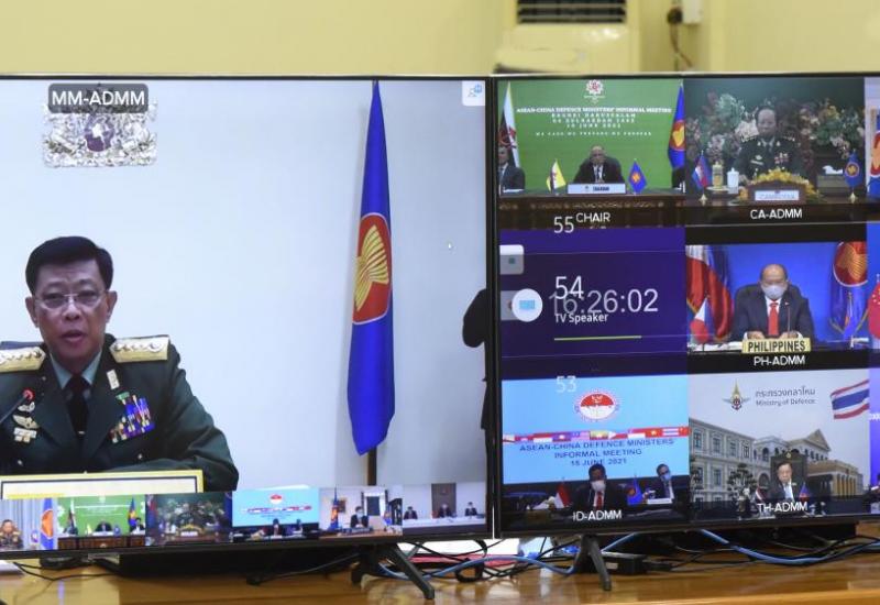 နိုင်ငံတော်စီမံအုပ်ချုပ်ရေး ကောင်စီအဖွဲ့ဝင်၊ ကာကွယ်ရေးဝန်ကြီးဌာန၊ ပြည်ထောင်စုဝန်ကြီး ဗိုလ်ချုပ်ကြီး မြထွန်းဦး ဦးဆောင်သည့် နိုင်ငံတကာနှင့်ပြည်တွင်းရေးရာဦးစီးဌာန၊ ညွှန်ကြားရေးမှူးချုပ် ဗိုလ်မှူးကြီး ငြိမ်းချမ်းနှင့် တာဝန်ရှိသူများသည် ယနေ့တွင် အာဆီယံအလှည့်ကျဥက္ကဋ္ဌ ဘရူနိုင်း ဒါရူဆလာမ်နိုင်ငံက ဦးစီးကျင်းပသည့် (၁၅) ကြိမ်မြောက် အာဆီယံ ကာကွယ်ရေးဝန်ကြီးများ အစည်းအဝေးသို့ Video Conference စနစ်ဖြင့် ကာကွယ်ရေးဝန်ကြီးဌာန၊ ဝန်ကြီးရုံး၊ အစည်းအဝေးခန်းမမှ ပါဝင်တက်ရောက်ကြသည်။