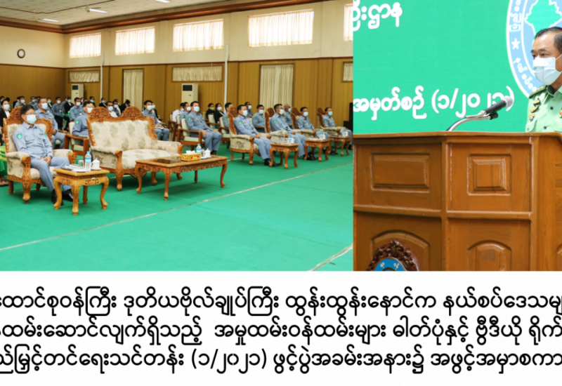 နိုင်ငံတော်စီမံအုပ်ချုပ်ရေးကောင်စီ ဥက္ကဋ္ဌ၊ တပ်မတော်ကာကွယ်ရေးဦးစီးချုပ် ဗိုလ်ချုပ်မှူးကြီး မင်းအောင်လှိုင်သည် ယနေ့နံနက်ပိုင်းတွင် ကရင်ပြည်နယ် စီမံအုပ်ချုပ်ရေးကောင်စီ အဖွဲ့ဝင်များနှင့် ဌာနဆိုင်ရာဝန်ထမ်းများအား ဘားအံမြို့ရှိ ပြည်နယ်စီမံအုပ်ချုပ်ရေး ကောင်စီရုံး၌ သွားရောက်တွေ့ဆုံ အမှာစကားပြောကြား သည်။