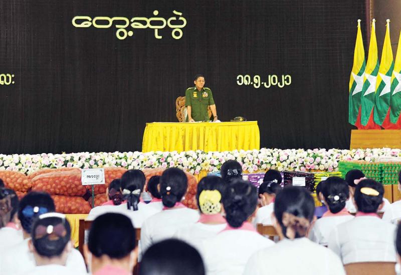 တပ်မတော်အနေဖြင့် ပြည်သူကရွေးခြယ်ထားသည့် ပါတီစုံဒီမိုကရေစီ လမ်းကြောင်း ခိုင်ခိုင် မာမာဖြစ်စေရန် နိုင်ငံတော်၏တာဝန်များကို ဥပဒေနှင့်အညီ ခေတ္တတာဝန်ယူ ထမ်းဆောင် နေခြင်းဖြစ်သဖြင့် ပေးအပ်လာသည့်တာဝန်များကို ကျေပွန်အောင် ကြိုးပမ်းဆောင်ရွက်ကြရန် လိုကြောင်း၊ လက်ရှိဖြစ်ပေါ်နေသည့် အခြေအနေ အရပ်ရပ်ကို ဆင်ခြင်သုံးသပ်ပြီး နိုင်ငံတော် အတွက် မဖြစ်သင့်တာ မဖြစ်ရအောင် ထိန်းသိမ်းဆောင်ရွက်ကြရန်လိုကြောင်းနှင့် နိုင်ငံတော်နှင့် တပ်မတော်အပေါ် သစ္စာစောင့်သိရမည်ဖြစ်ကြောင်းဖြင့် နိုင်ငံတော်စီမံအုပ်ချုပ်ရေး ကောင်စီ ဥက္ကဋ္ဌ၊ တပ်မတော်ကာကွယ်ရေးဦးစီးချုပ် ဗိုလ်ချုပ်မှူးကြီး မင်းအောင်လှိုင်က ယနေ့ မွန်းလွဲပိုင်း တွင် အလယ်ပိုင်းတိုင်းစစ်ဌာနချုပ်၊ မန္တလေးတပ်နယ်မှ အရာရှိ၊ စစ်သည်၊ မိသားစုများအား တွေ့ဆုံအမှာစကား ပြောကြားစဉ် ထည့်သွင်းပြောကြားသည်။