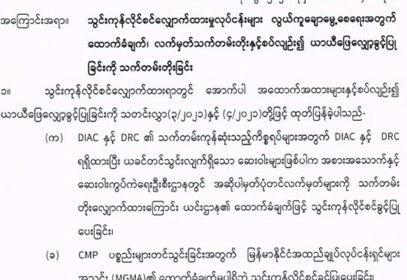 ပြန်ကြားရေးဝန်ကြီးဌာနက တာဝန်ယူစီမံခန့်ခွဲလျက်ရှိသော မန္တလေးမြို့ရှိ နိုင်ငံပိုင် ရုပ်ရှင်ရုံ လေးရုံနှင့် ပတ်သက်၍ တာဝန်နှင့်ဝတ္တရားများ လွှဲပြောင်းသည့်စာချုပ် (Deed of Assignment) ချုပ်ဆိုခြင်း အခမ်းအနားကို ယနေ့ညနေ ၅နာရီခွဲက မန္တလေးတိုင်းဒေသကြီး စီမံအုပ်ချုပ်ရေး ကောင်စီရုံး အစည်းအဝေး ခန်းမ၌ ကျင်းပသည်။