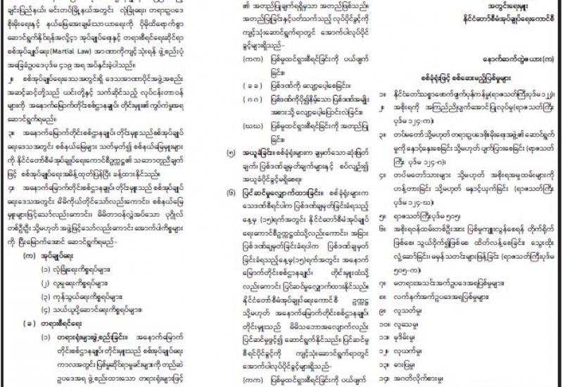 မတရားသင်းကြေညာထားသော NUG အမည်ခံ ပြည်ပြေးအစိုးရနှင့် CRPH အမည်ခံ ပြည်ပြေး လွှတ်တော်ကော်မတီတို့၏ ထောက်ပံ့မှုနှင့် ဆူပူအကြမ်းဖက်သူများက နိုင်ငံတော် တည်ငြိမ်အေးချမ်းရေးနှင့် အများပြည်သူတို့၏ လုံခြုံရေး၊ တရားဥပဒေ စိုးမိုးရေးနှင့် ရပ်ရွာအေးချမ်း သာယာရေးတို့ကို ပျက်ပြားစေရန် ဆောင်ရွက်နေမှုများကြောင့် တပ်မတော်၊ မြန်မာနိုင်ငံရဲတပ်ဖွဲ့၊ မြန်မာနိုင်ငံ မီးသတ်တပ်ဖွဲ့တို့မှ တပ်ဖွဲ့ဝင်များဖြင့် ပူးပေါင်း၍