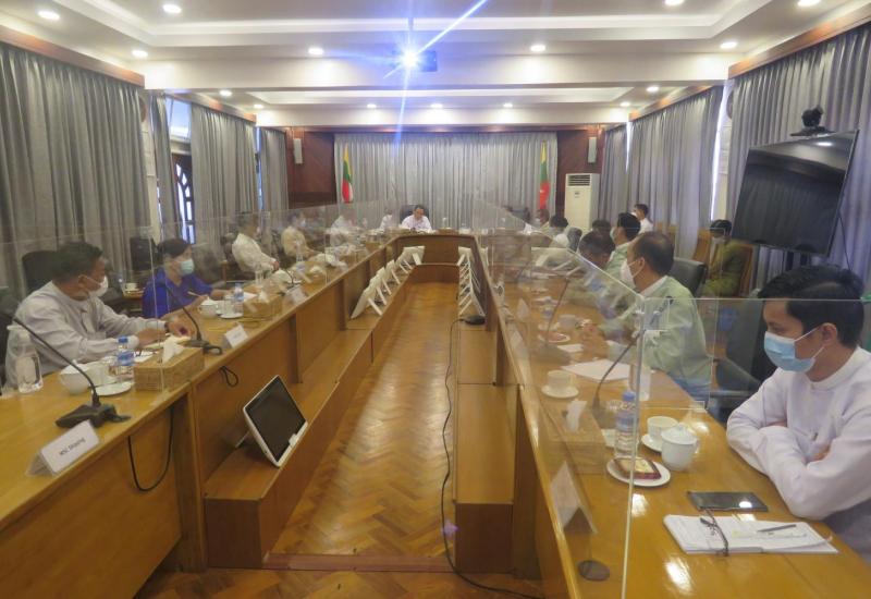 စီမံကိန်းနှင့် ဘဏ္ဍာရေးဝန်ကြီးဌာန ဒုတိယဝန်ကြီး ဦးမောင်မောင်ဝင်းသည် ရခိုင်ပြည်နယ် စီမံအုပ်ချုပ် ရေးကောင်စီဥက္ကဋ္ဌနှင့် အဖွဲ့ဝင်များကို မေ ၅ ရက် မွန်းလွဲပိုင်းက တွေ့ဆုံ၍ ခရီးစဉ်ကိစ္စရပ်များနှင့် စပ်လျဉ်း၍ ရှင်းလင်းတင်ပြသည်။