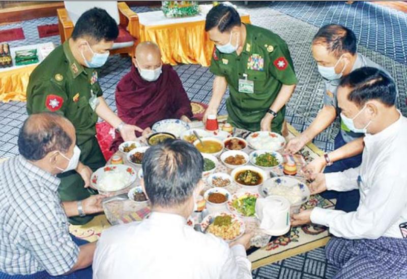 ဘုန်းတော်ကြီးကျောင်းများ၊ သာသနာ့နွယ်ဝင် သီလရှင်ကျောင်းများနှင့် ဘာသာရေး ကျောင်းများတွင် ဆွမ်းအဆင်ပြေစေ ရေးအတွက် တပ်မတော် (ကြည်း၊ ရေ၊ လေ) အရာရှိ၊ စစ်သည်၊ အရာထမ်း၊ အမှုထမ်းများက တိုင်းစစ်ဌာနချုပ်များအလိုက် မြို့နယ်အသီးသီး၌ ဆွမ်းဆန်တော်၊ ဆီ၊ ဆား၊ ပဲ အမယ်လေးမျိုးနှင့် လှူဖွယ်ပစ္စည်းများ လှူဒါန်းခြင်း၊ နေ့ဆွမ်းများ ဆက်ကပ်လှူဒါန်းခြင်းနှင့် ကျန်းမာ ရေးစစ်ဆေးပေးခြင်းများကို ဆောင်ရွက်လျက် ရှိသည်။