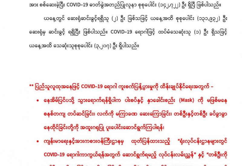 COVID-19 ရောဂါစောင့်ကြပ်ကြည့်ရှုမှုနှင့်ပတ်သက်၍ သတင်းထုတ်ပြန်ခြင်း (၂၅-၄-၂၀၂၁) ရက်နေ့၊ ည (၈:၀၀) နာရီ