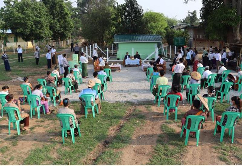 ရခိုင်ပြည်နယ် အမ်းမြို့နယ် အတွင်း နေရပ်ပြန်မည့် တိုက်ပွဲရှောင် ဒေသခံပြည်သူများကို ထောက်ပံ့ငွေနှင့် ရိက္ခာဆန် ထောက်ပံ့ပေးအပ်ပွဲကို ဧပြီ (၂၃ ရက် နံနက်ပိုင်းတွင် အမ်းမြို့ အထွေထွေ အုပ်ချုပ်ရေးမှူး ဦးစီးဌာန အစည်းအဝေး ခန်းမ၌ ပြုလုပ်ရာ အနောက်ပိုင်းတိုင်း စစ်ဌာနချုပ်မှ တာဝန်ရှိသူများ၊ မြို့နယ် စီမံအုပ်ချုပ်ရေးအဖွဲ့ ဥက္ကဋ္ဌ ဦးဌေးအောင်နှင့် အဖွဲ့ဝင်များ၊ ဌာနဆိုင်ရာများနှင့် နေရပ်ပြန်မည့် တိုက်ပွဲရှောင် ဒေသခံပြည်သူများ တက်ရောက်ကြသည်။
