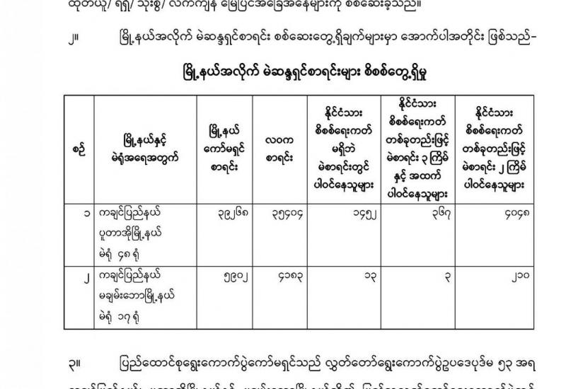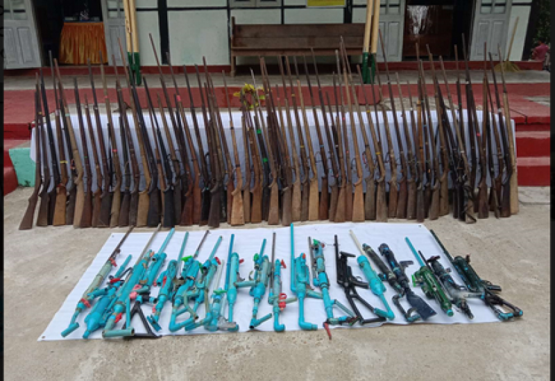 နေပြည်တော်ကောင်စီနယ်မြေ၊ ပျဉ်းမနားမြို့နယ်နှင့် တပ်ကုန်းမြို့နယ်၊ တနင်္သာရီတိုင်းဒေသကြီး၊ ကျွန်းစုမြို့၊ မကွေးတိုင်းဒေသကြီး၊ ပွင့်ဖြူမြို့နယ်နှင့် ပဲခူးတိုင်းဒေသကြီး၊ ရွှေကျင်မြို့နယ် များအတွင်းရှိ ကျေးရွာအချို့တို့၌ ဆူပူအကြမ်းဖက် မှုတွင် အသုံးပြုသည့် လက်လုပ်သေနတ်များ ကိုင်ဆောင်နေကြောင်း သတင်းအရ အေပြီ ၁၂ ရက်နှင့် ယနေတို့တွင် တိုင်းစစ်ဌာနချုပ်ရှိ တပ်နယ်အသီးသီးမှ လုံခြုံရေး တပ်ဖွဲ့ဝင်များက ကျေးရွာအုပ်ချုပ်ရေးမှူး များနှင့်အတူ သွားရောက်၍ ဒေသခံပြည်သူ များကို တရားမဝင် လက်နက်ကိုင်ဆောင်ခြင်းသည် တရားဉပဒေဖြင့် ထိရောက်စွာ အရေးယူခံရနိုင်ကြောင်း နားလည်သဘော ပေါက်အောင် ရှင်းလင်းပြောကြားသည်။