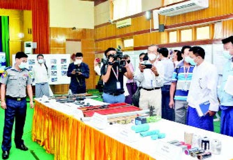 ဆူပူအကြမ်းဖက်သူများအသုံးပြုလျက်ရှိသည့် လက်နက်များနှင့် ပစ္စည်းများ သိုဝှက်ထားမှုနှင့် ကိုင်ဆောင်မှုများကို လုံခြုံရေးတပ်ဖွဲ့ဝင်များက စစ်ဆေးရှာဖွေ သတင်းဖော်ထုတ် ဖမ်းဆီးထိန်းသိမ်းခြင်းများ ဆောင်ရွက်လျက်ရှိရာ အေပြီ ၁၁ ရက် တွင် ဒဂုံမြို့သစ်(အရှေ့ပိုင်း)မြို့နယ်၊ (၅)ရပ်ကွက်၊ ဗိုလ်မှူးဗထူးလမ်း၊ လူနေထိုင်ခြင်းမရှိသည့် အိမ်အမှတ်(၂၈၆)၌ ဆူပူအကြမ်းဖက်မှုတွင်အသုံးပြုသည့် ပစ္စည်းများအားလည်းကောင်း၊ သံတွဲမြို့နယ်၊ နန်းချောင်း ကျေးရွာအုပ်စု၊ အထက်နန်းချောင်းကျေးရွာရှိ ဝေဇင်ကျော်(ဘ) ဦးညီကျော်မြအား ၎င်း၏နေအိမ်၌ လက်လုပ်သေနတ် ၁ လက်၊ ဇော်မင်းဦး(ဘ) ဦးကျော်မြင့်အား ၎င်း၏နေအိမ်၌ လက်လုပ်သေနတ် ၂ လက်နှင့် ဇော်ရဲ(ဘ) ဦးယဉ်ထွေးအား ၎င်း၏တောင်ယာတဲအတွင်းမှ လေသေနတ် ၁ လက်တို့နှင့်လည်းကောင်း၊ ချမ်းမြသာစည် မြို့နယ်၊ ကန်သာယာရပ်ကွက်၊ အကွက်(ခခ-၃/၇၅)၊ ၅၇ လမ်းနှင့် ၅၈ လမ်းကြား၊ ၁၀၂ လမ်းနှင့် ၁၀၃ လမ်းကြားရှိ Nobel INN တည်းခိုခန်းရှိ အခန်းအမှတ်(၁၀၆)၌ မစုစုမာ(ဘ) ဦးပေစိအား လက်လုပ်မိုင်း ၂ လုံး၊ အခြားဆက်စပ်ပစ္စည်းများနှင့်လည်းကောင်း ဖမ်းဆီး ထိန်းသိမ်းရမိခဲ့သည်။