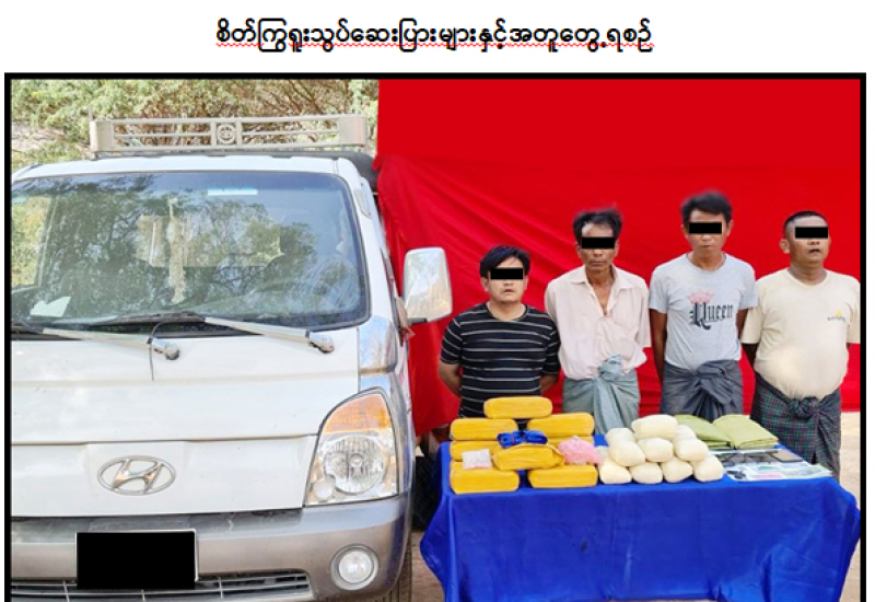 မူးယစ်ဆေးဝါးတားဆီးနှိမ်နင်းရေးရဲတပ်ဖွဲ့မှ တပ်ဖွဲ့ဝင်များ ပါဝင်သောပူးပေါင်းအဖွဲ့သည် ဧပြီ ၉ ရက် ညနေ ၄ နာရီတွင် ဝိုင်းမော်မြို့နယ်၊ ဆဒုံး-ဝိုင်းမော်သွားကားလမ်း၊ (၁၃)ကီလိုမီတာ ပူးပေါင်း စစ်ဆေးရေးစခန်းတွင် လွမ်းထော(ခ)မောင်တာ မောင်းနှင်ပြီး မအေးရီ လိုက်ပါလာသော မော်တော် ဆိုင်ကယ်ကို ရပ်တန့်စစ်ဆေးရှာဖွေရာ ဘိန်းစိမ်း ၁၀ ကီလို ကိုလည်းကောင်း။