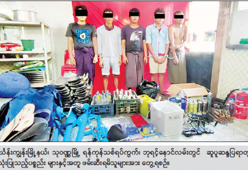 မြို့နယ်အချို့၌ ဆူပူအကြမ်းဖက်မှုလုပ်ရပ်များတွင် အသုံးပြုမည့် လက်နက်ကိရိယာများကို လက်ဝယ် ထားရှိသူများနှင့်အတူဆက်လက်ဖော်ထုတ်ဖမ်းဆီး ရမိခဲ့ကြောင်း သိရသည်။