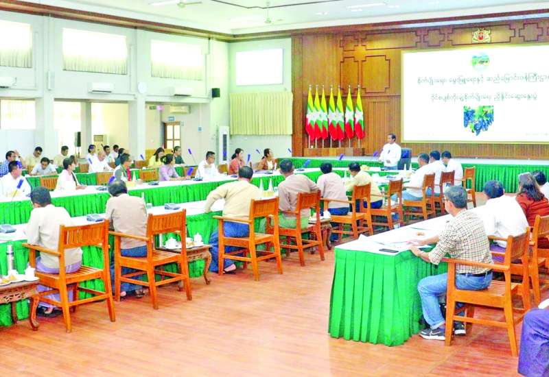 စပျစ်သီးနှံစိုက်ပျိုးရန် မြေလွတ်၊ မြေလပ်နှင့်မြေရိုင်းများ လုပ်ပိုင်ခွင့်၊ အသုံးပြုခွင့် လျှောက်ထား လာသောကုမ္ပဏီများမှ တာဝန်ရှိသူများအားတွေ့ဆုံ၍ မြေလွတ်၊ မြေလပ်နှင့် မြေရိုင်းများ စီမံခန့်ခွဲရေးဥပဒေနှင့်အညီ အသုံးပြုလုပ်ကိုင်နိုင်ရေး အသိပေးဆွေးနွေးခြင်းကို ယမန်နေ့ညနေပိုင်းက စိုက်ပျိုးရေး၊ မွေးမြူရေးနှင့် ဆည်မြောင်းဝန်ကြီးဌာန ပြည်ထောင်စုဝန်ကြီးရုံး အစည်းအဝေးခန်းမ၌ ကျင်းပသည်။