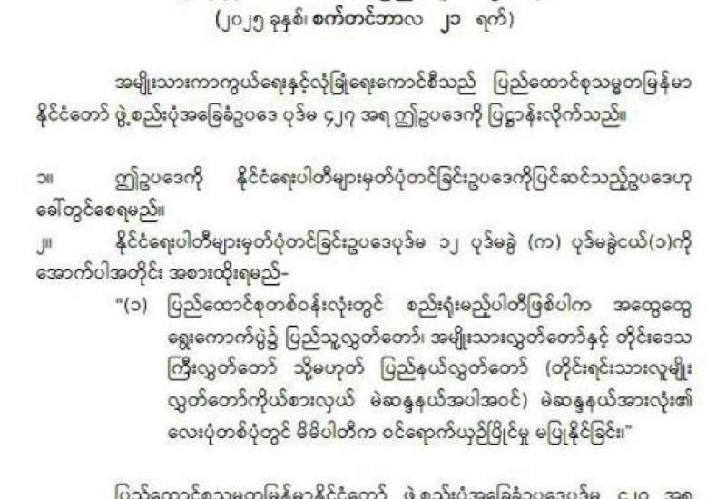 နိုင်ငံရေးပါတီများမှတ်ပုံတင်ခြင်းဥပဒေကို ပြင်ဆင်သည့်ဥပဒေ
