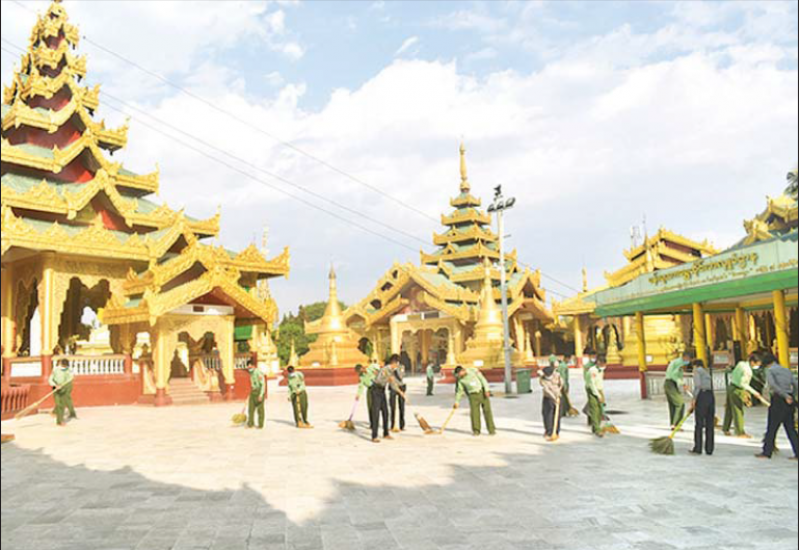 နိုင်ငံတစ်ဝန်းရှိ ဘုရားစေတီပုထိုးများကို ဖေဖော်ဝါရီ ၈ ရက်မှစတင်၍ COVID- 19 စည်းမျဉ်း၊ စည်းကမ်း များနှင့်အညီ ဖူးမြော်ခွင့်ပြုပေးမည်ဖြစ်ရာ ဘုရားဖူး ပြည်သူများ စိတ်အေးချမ်း သာစွာ ဖူးမြော်ကြည်ညို တရားဘာဝနာပွားများ နိုင်ရေးနှင့် ဘုရားစေတီပုထိုးများ ၏ ပတ်ဝန်း ကျင် သန့်ရှင်းသာယာလှပရေး အတွက် တိုင်းစစ်ဌာနချုပ်အသီးသီးမှ တပ်မတော်သားများနှင့် မိသားစုဝင်များ၊ မြန်မာနိုင်ငံ ရဲတပ်ဖွဲ့ဝင် များနှင့် မီးသတ် တပ်ဖွဲ့ဝင်များက စုပေါင်းသန့်ရှင်းရေး ဆောင်ရွက်ပေး လျက်ရှိကြောင်း သိရသည်။ ။