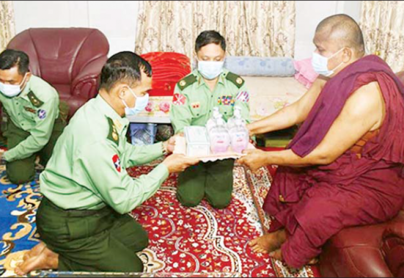 COVID-19 ကူးစက်ရောဂါ ကာကွယ် ထိန်းချုပ်ရေး ကာလတွင် ဘုန်းတော်ကြီးကျောင်းများနှင့် သီလရှင်ကျောင်းများတွင် ဆွမ်းကိစ္စများ အဆင်ပြေစေရန် အတွက် တိုင်းစစ်ဌာနချုပ်များ အလိုက် လှူဒါန်းလျက်ရှိရာ ယနေ့ နံနက်ပိုင်းတွင် ကာကွယ်ရေးဦးစီးချုပ်ရုံး (ကြည်း)မှ ဒုတိယ ဗိုလ်ချုပ်ကြီး အောင်စိုးသည် အရှေ့တောင်တိုင်း စစ်ဌာနချုပ် ရေးတပ်နယ်မှ တာဝန်ရှိ သူများနှင့်အတူ မွန်ပြည်နယ်၊ ရေးမြို့၊ ပုဇ္ဇရာမကျောင်းတိုက် ဆရာတော် ဘဒ္ဒန္တပုဗ္ဗရမ္မ အမှူး ပြုသော သံဃာတော်များအား ဖူးမြော်ကြည်ညိုပြီး ဆရာတော်ထံမှ ငါးပါးသီလခံယူ ဆောက် တည်ကြသည်။ ထို့နောက် သာသနာရေးဆိုင်ရာများ လျှောက်ထားကာ ဆွမ်းဆန်တော်၊ ဆီနှင့် လှူဖွယ် ပစ္စည်းများ ဆက်ကပ်လှူဒါန်းကြသည်။