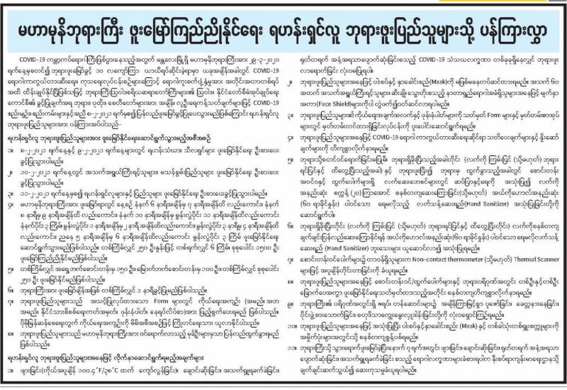 ရွှေတိဂုံစေတီတော်မြတ်ကြီး ဖူးမြော်ကြည်ညိုနိုင်ရေး ရဟန်းရှင်လူ ဘုရားဖူးပြည်သူများသို့ ပန်ကြားလွှာ