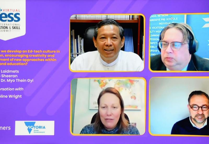 World Pulses Day 2021 အခမ်းအနားနှင့် မြန်မာနိုင်ငံဒီဂျစ်တယ် စီးပွားရေးဆိုင်ရာ လုပ်ငန်းရှင်များအသင်း ပထမအကြိမ်မြောက် နှစ်ပတ်လည် အသင်းသား စုံညီအစည်းအဝေးတို့ကို ယနေ့ကျင်းပရာ စီးပွားရေးနှင့် ကူးသန်းရောင်းဝယ်ရေးဝန်ကြီးဌာန ပြည်ထောင်စုဝန်ကြီး ဒေါက်တာသန်းမြင့် Video Message ပေးပို့၍ အမှာစကားပြောကြားသည်။